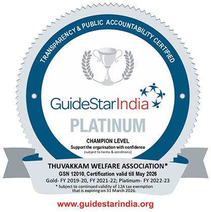Thuvakkam is a GuideStar India certified NGO. We’re delighted to be endorsed and listed as one of India’s most reliable NGOs. Thuvakkam has always stood its ground on transparency and accountability, and now to be known for it is truly encouraging.